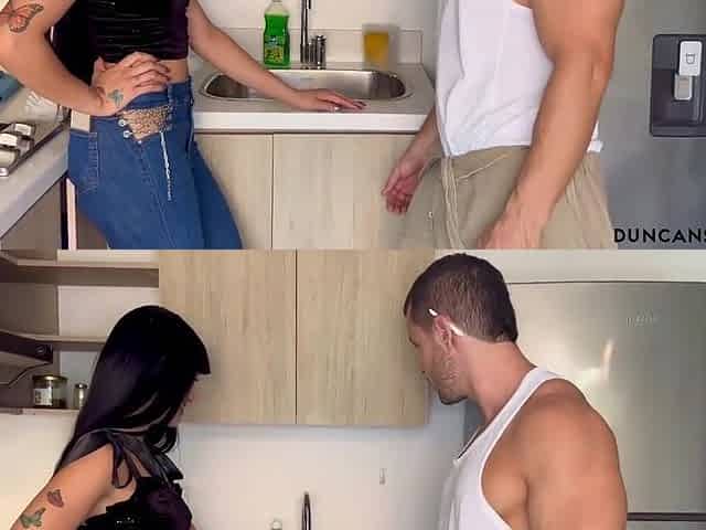 Beautiful Girl Sucks And Fucks Passionately With Muscular Guy In The Kitchen