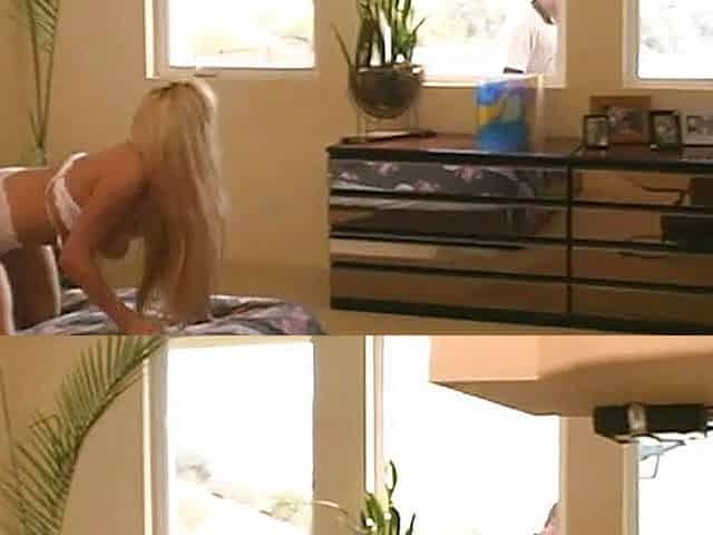 Busty blonde gets hammered by her muscular lover while their friend records it
