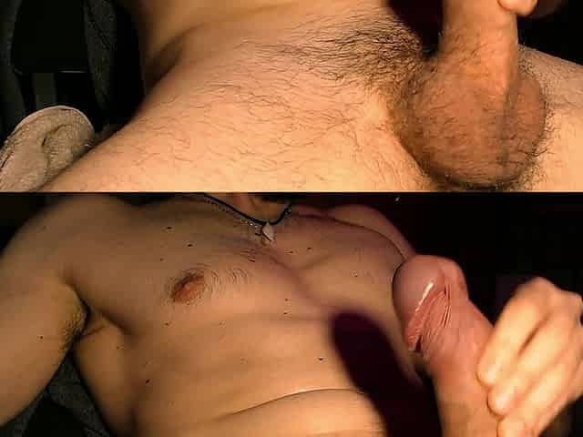 Gabriel exposes his muscular body and uses his hands to make himself cum