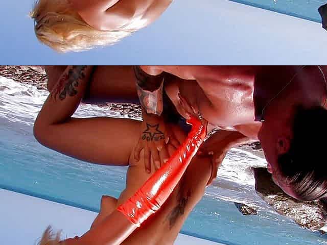 Blonde girl gets her pussy banged hard by a muscular man outdoor