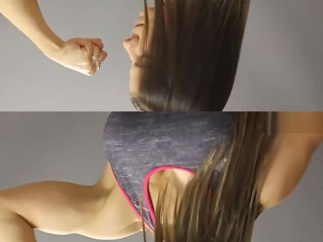 Une prof de fitness nous montre ses muscles lors d'une sanc