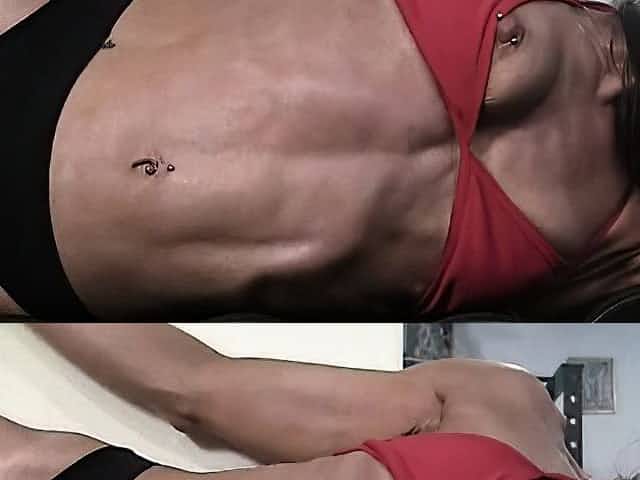 Muscled beauty flaunts her toned body