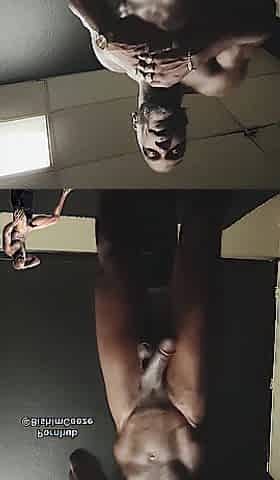 Hot dude touching his weenie for a fan - striptease and hanging from a pullup bar with a hard ramrod