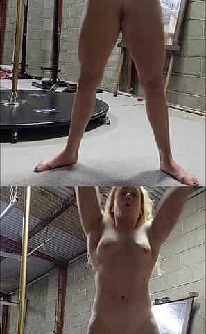 Blonde Muscle Girl Play with Her Big Clit and Flex Her Huge Muscles