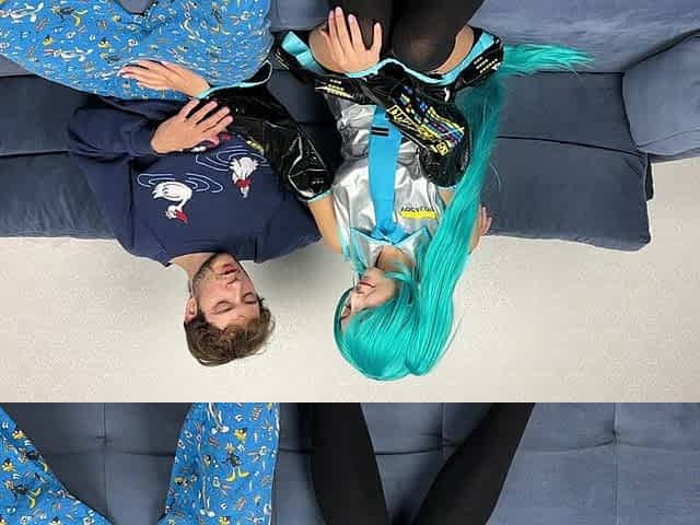 Hatsune Miku Fan handjob and fingering her pussy to orgasm - mutual masturbation cumshot