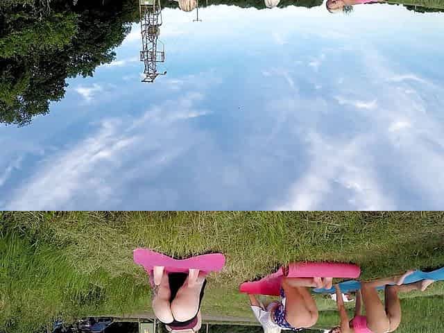 Gymnastics in sportwear and naked, tits sucking, naked walking