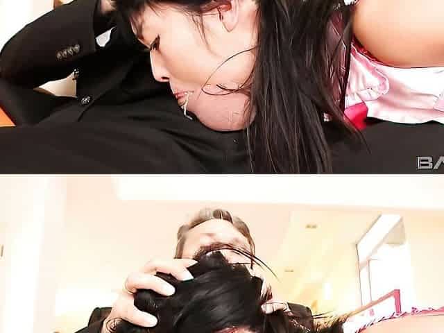 Pretty Brunette Secretary Wraps Her Lips Around A Hard Dick