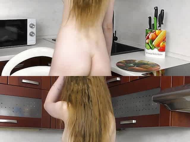 Solo hot chick Vika Lita moaning and masturbating in the kitchen in 4K.