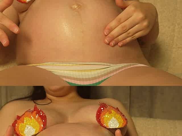 Stepsister Oils up Her Pregnant Big Belly and Plays with Her Belly While Getting Oily