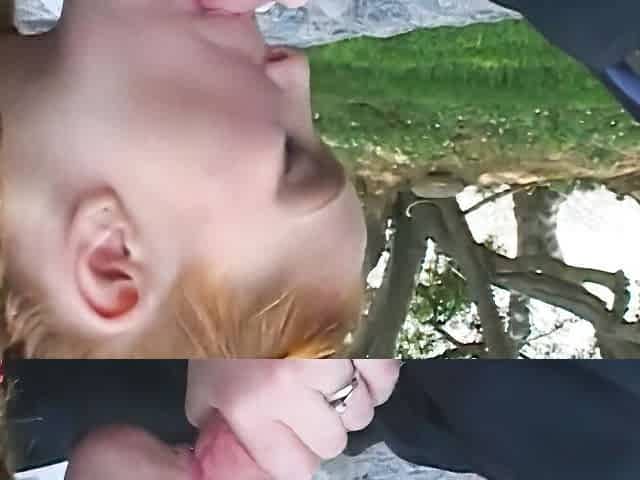 Adorable blonde Candy Love gives a nice hands free blowjob