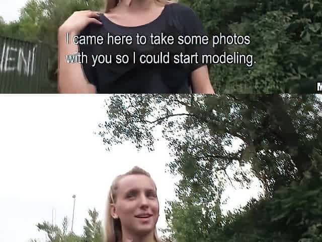 Outdoor sex for money with a long-legged brunette Aimee Ryan