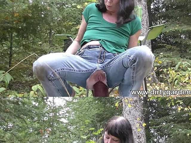Dirtygardengirl in Ripped Pants Fucking Huge Dildo Form Mrhankey & Anal Prolapse in Forest