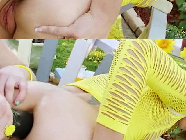 Brazilian cougar Elisa Sanches is fucked anally in the garden in broad daylight
