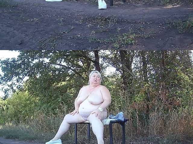 Mother-in-law in the Park Undressing and Masturbating on a Bench