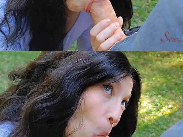 POV blow job a Public park by a sexy amateur honey on her knees.