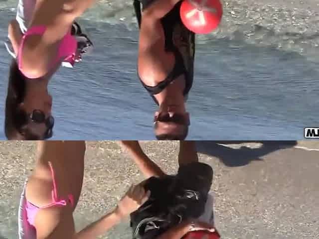 Gets Bug Titties Sucked On The Beach - Julia Reaves