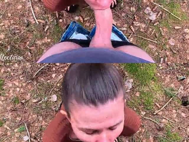 Sneaky off in the Woods She Jerks His Cock Will They Get Caught?
