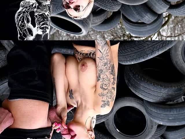 Amateur beauty Lararussian Doll gives a blowjob to a trucker in the woods with a mouthful of spunk