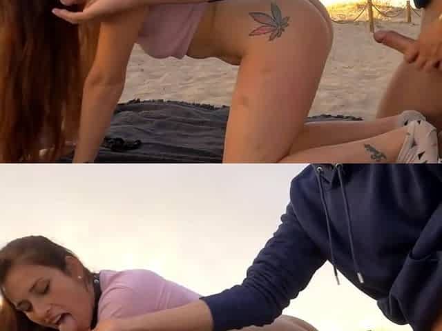 Fit blonde Cougar MILF with Biggest Bouncing Boobs Pick up for Cheating Fuck at the Beach
