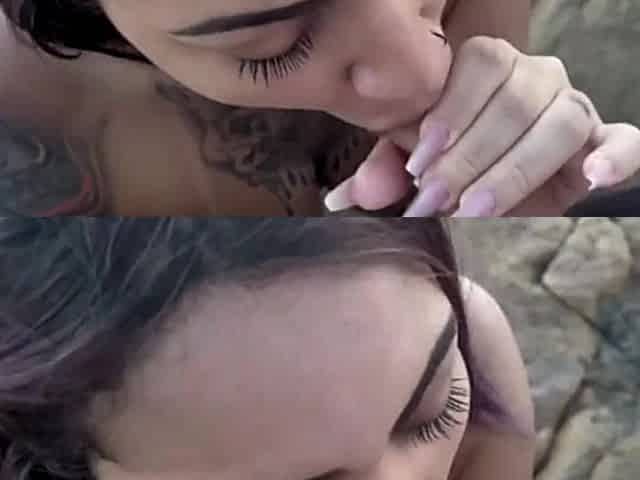 Beach tourist Feline_Sex gets playful with a sex toy and some coochie licking