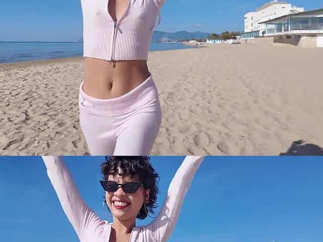 ElsaRixterXXX's pantyless stroll along the city beach and rocky seaside