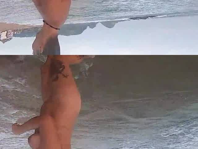 Chick shows her body and becomes one with nature at the beach
