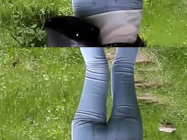 Diana Tries to Hold Her Pee Grabbing Her Crotch While She Is on a Walk Trough a Forest