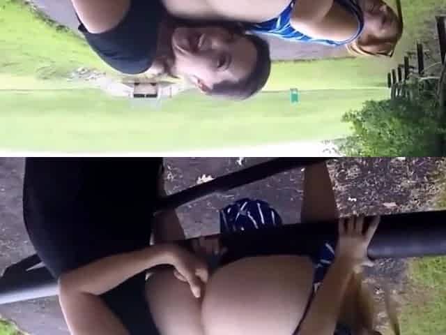 Blonde babe with huge tits & scoreland com bikini scores a hot bikini ride in the woods