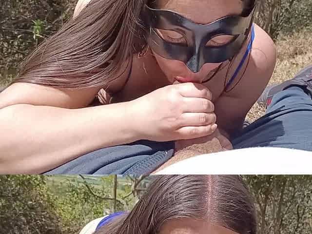Rebecca gives a sloppy blowjob in the park