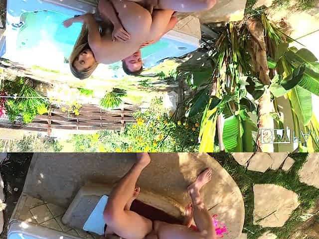 My neighbor teases me in the public jacuzzi with his big-titted Colombian friend