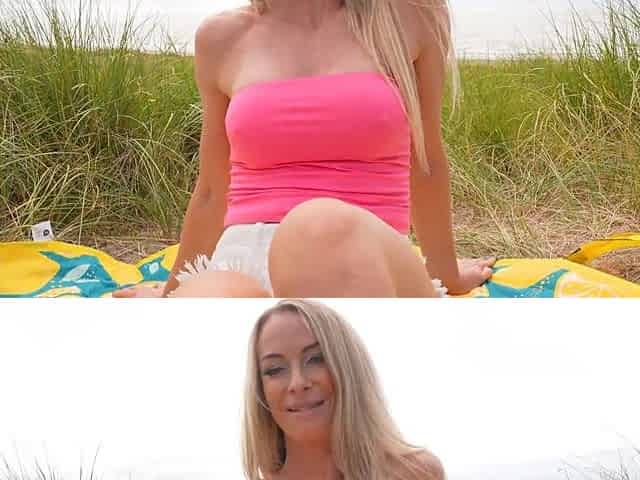 European Stepmom outdoor at the public beach breasts sesh flashing nipps