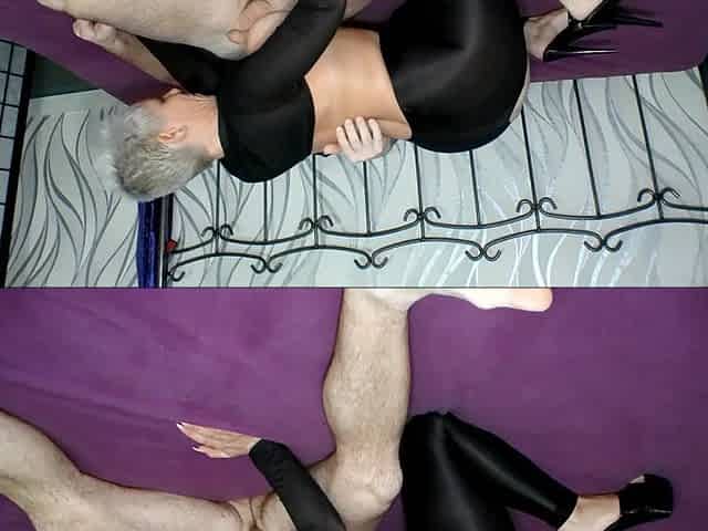 My new neighbor gives an amazing blowjob and footjob until I finish on her