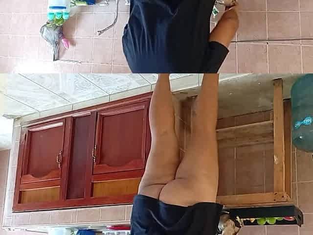 I discover my neighbour alone with a tremendous butt washing garments in shorts and I bang her for a suck