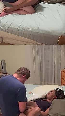 Neighbor come to bed with us but don't move too much to fuck on the sly.