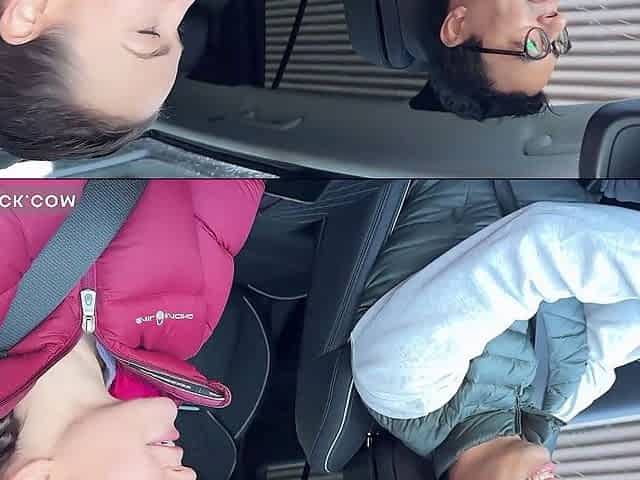 Caught having loud public sex in a parking lot: risky backseat creampie action!