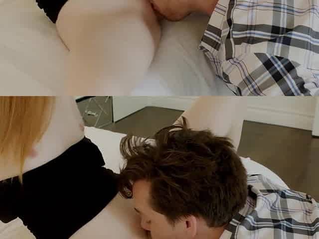 Busty neighbor walks in on stepmom and stepdaughter licking