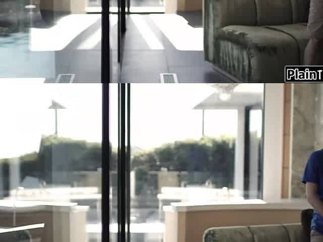 Naughty teen neighbor spies on my girlfriend leaving, fantasizes about watching my big dick