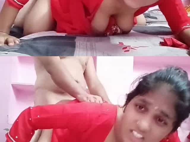 Sexy Indian neighbor in red saree fucks her husband's friend at home