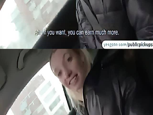Hot neighbor gets persuaded to show tits in public and have sex for cash