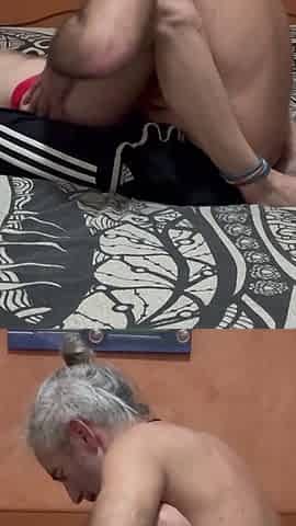 I catch my neighbour Pau Rojas masturbating in my baths.