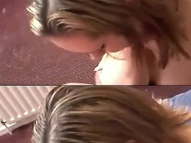 She sucks her chubby neighbour and takes the cum