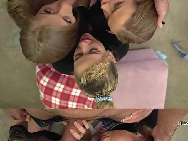 3 stupid bitches are taking turns sucking their recent neighbour's wang previous to getting drilled very hard