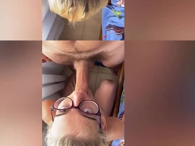 Lewd blond woman was eagerly sucking her neighbour's rod, previous to riding it like a real pro