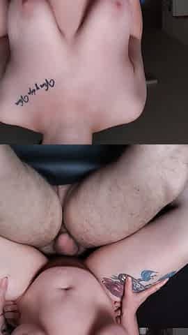 Hot Married Neighbor Jumps on a Big Dick. Cum on Her Big Natural Breasts