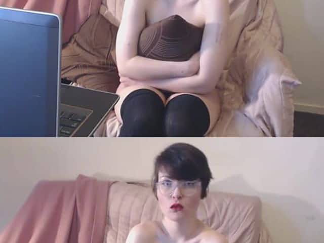 Nerd girl shows her pussy on webcam for a 1st time