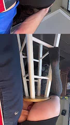 Nerdy cutie with natural tits plays with her succulent fanny on chair