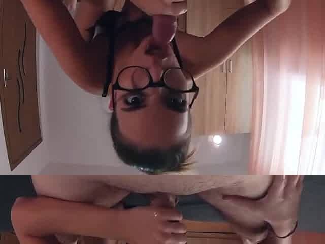 MyDirtyHobby - Nerdy babe swallows for the first time POV