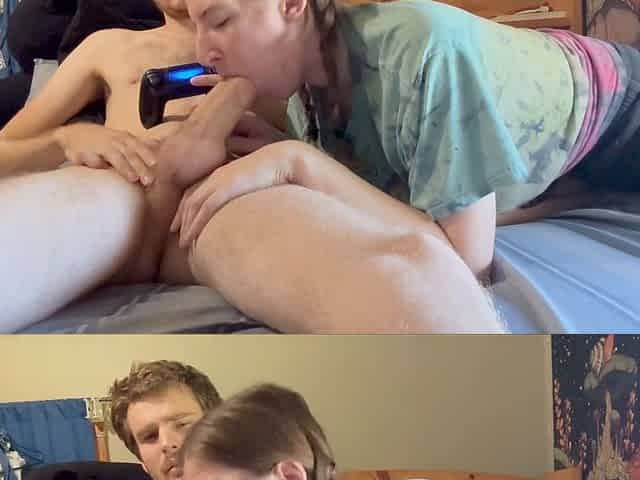 Two nerdy teens take turns sucking and riding hard cock live at sexycamx.com