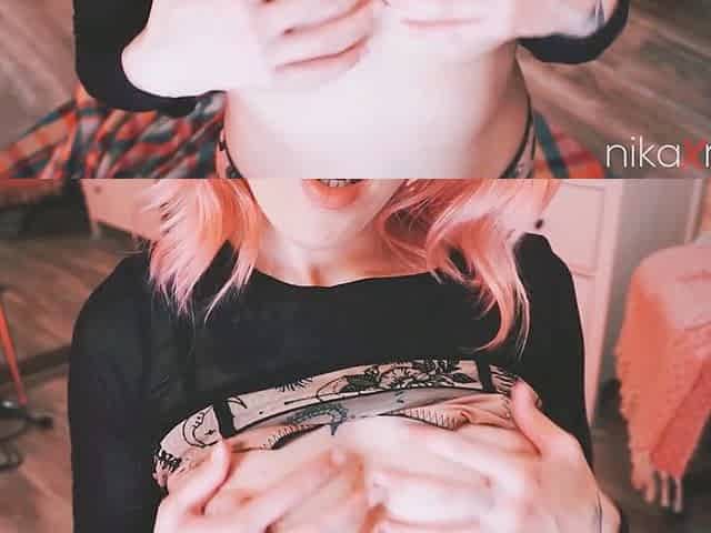 Busty Pink Haired Nerd Fucks Her Wet Pussy with Dildo While Leaking Girl Cum