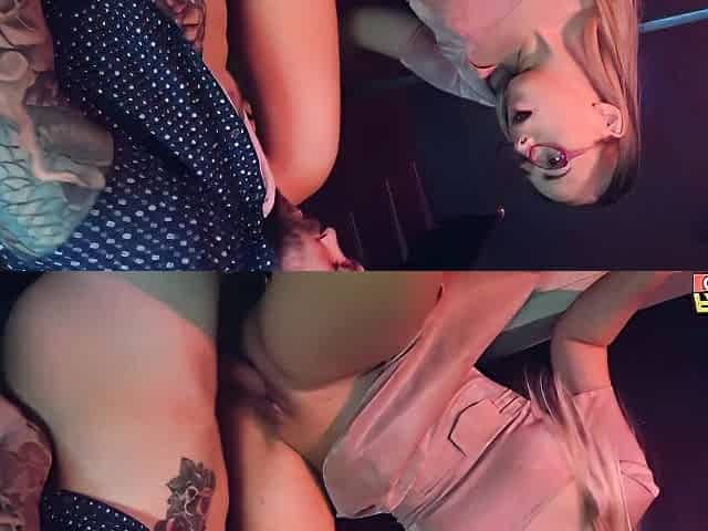 Blonde bombshell and nerdy brunette are professionals at the Gloryhole